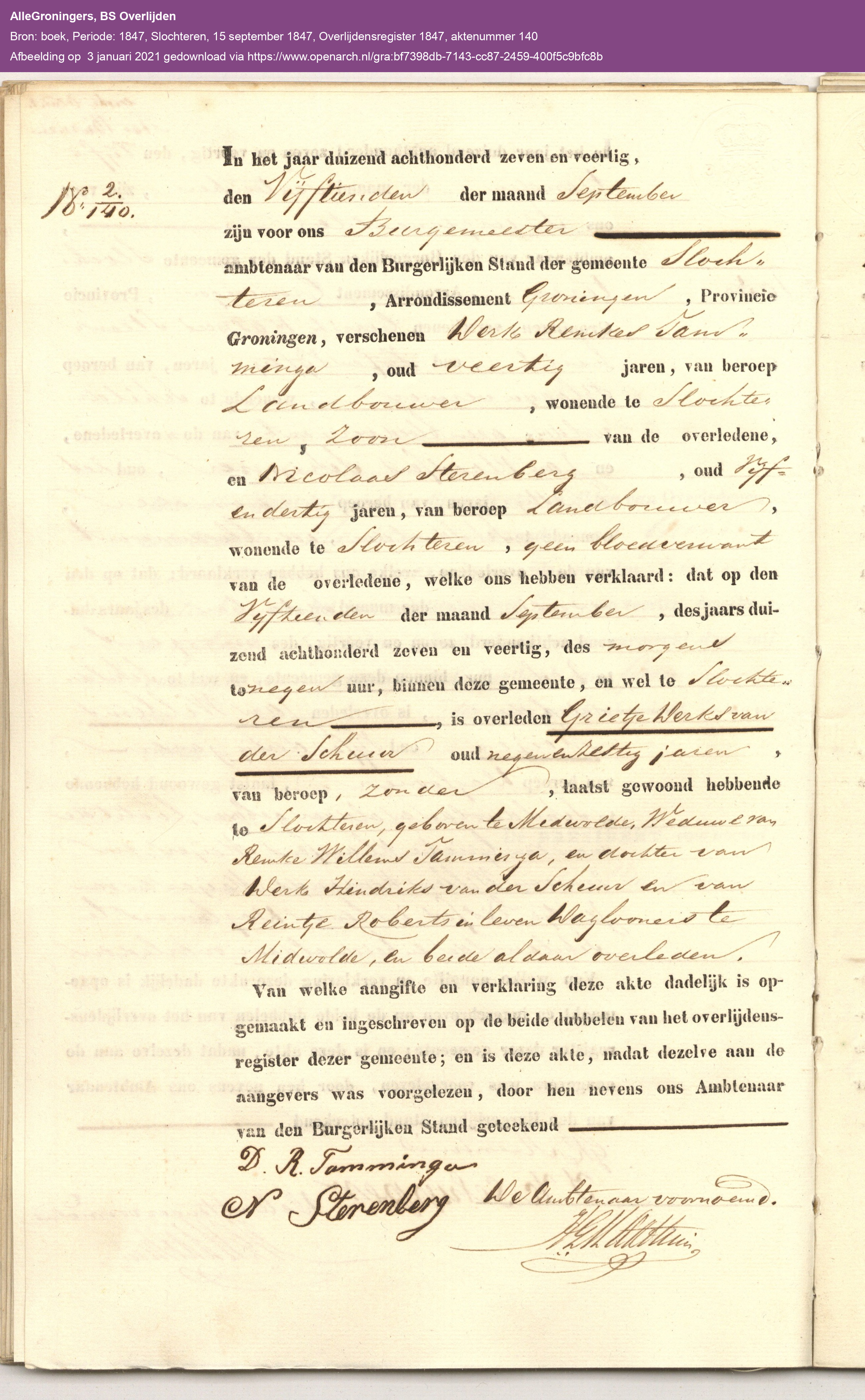 | Tamminga, Willem Remkes | 14-02-1803 | 09-08-1885 |