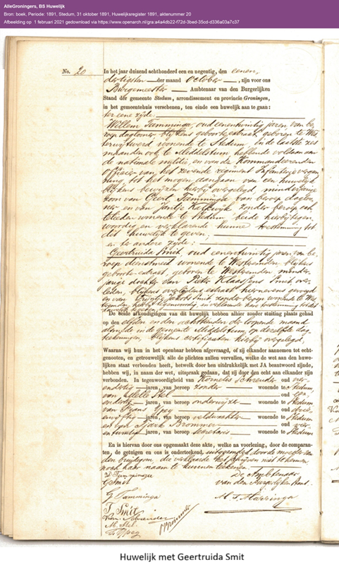 | Huwelijk | 31-10-1891 | Stedum (groningen) | 1e huwelijk met Geertruida Smit | |