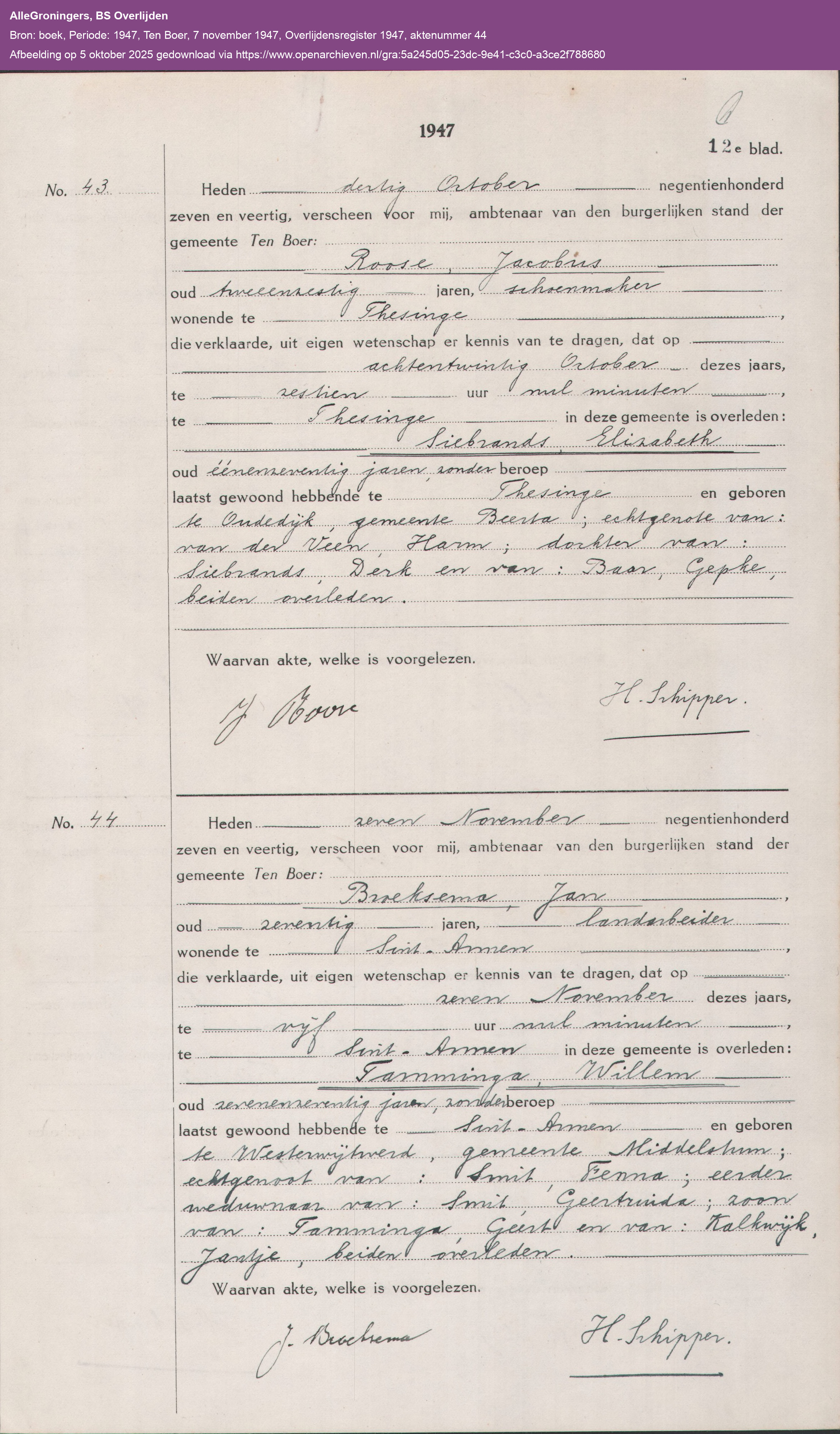| Overlijden | 07-11-1947 | St Annen (groningen) | ||